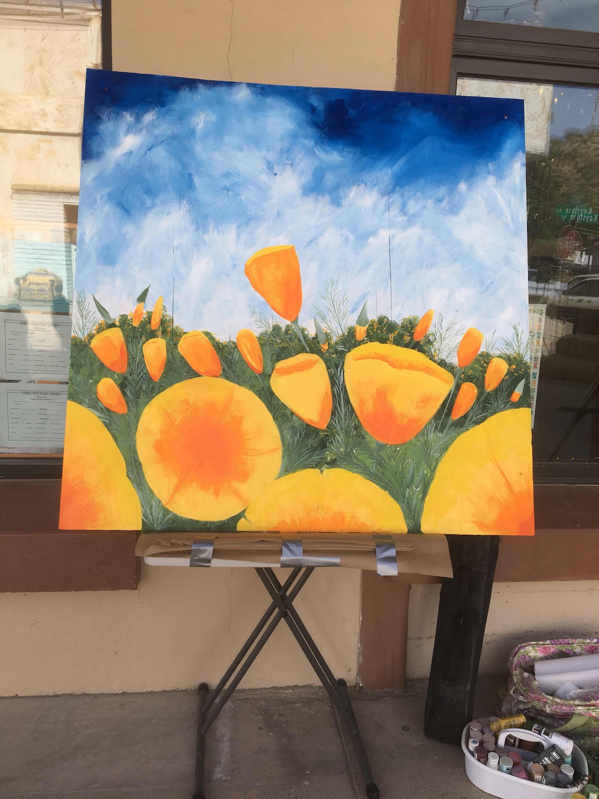 So on Sunday I painted at our local art fest. 2x2’ board. Not quite done here.