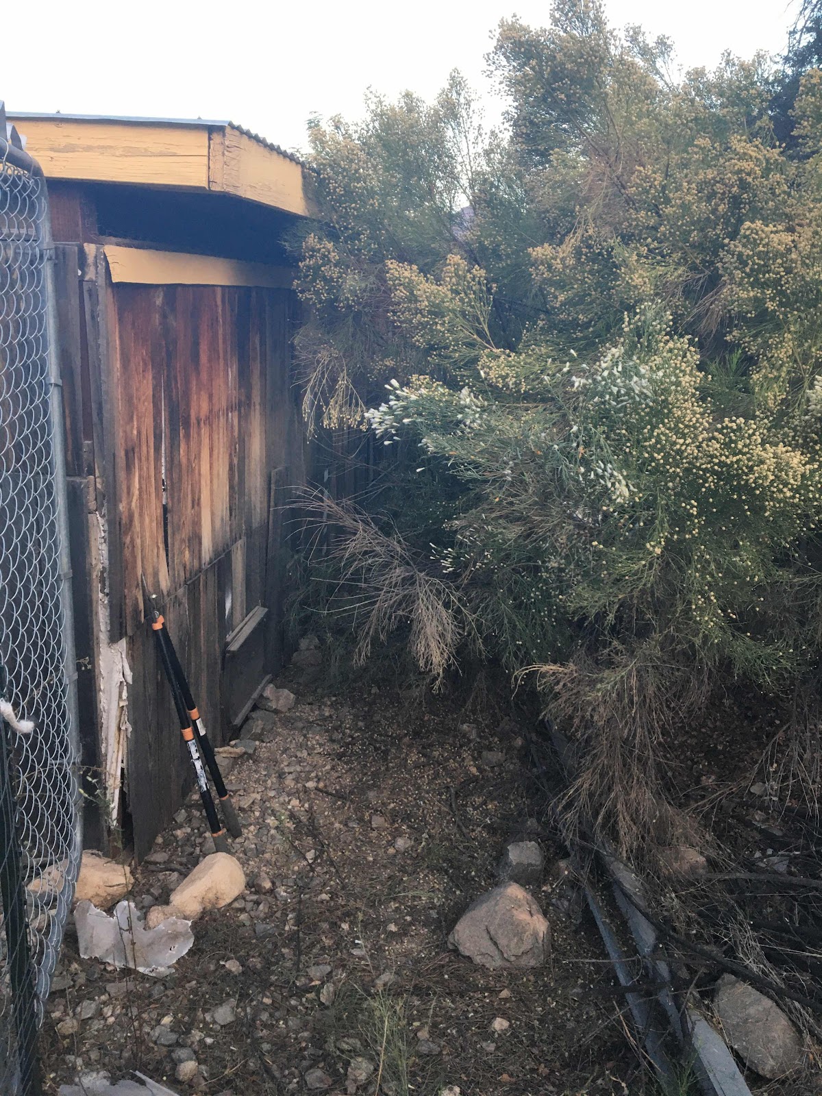 Sigh. The work is never ending. I’ll have to get the ladder and pull that tarp back into place. But not today. No rain anytime soon and I kinked my neck cutting brush.