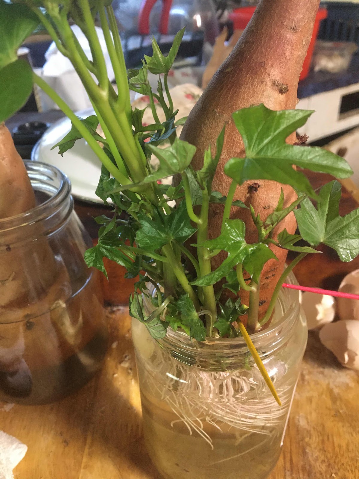 My store bought sweet potato is sprouting. Work was crazy towards the end of my shift. Then I came to water and do chores. Posie dumped a quart of milk just as we were almost finished milking.